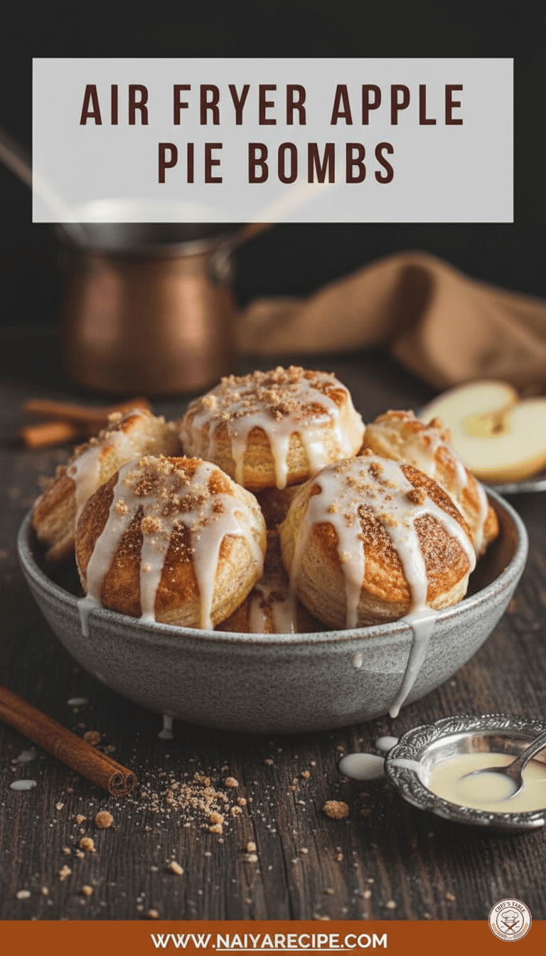 Are you ready to discover a dessert that will revolutionize your snack game? Look no further than these incredible Air Fryer Apple Pie Bombs! Imagine all the comforting, warm, and sweet flavors of a classic apple pie, but in a fun, bite-sized, and incredibly easy-to-make package. These little golden nuggets are crispy on the outside, bursting with tender, spiced apple filling on the inside, and can be drizzled with a delightful glaze that makes them absolutely irresistible. Forget the fuss of a traditional pie crust and the long baking times – these apple pie bombs come together quickly, making them perfect for a last-minute treat, a casual gathering, or simply satisfying your sweet tooth any day of the week.