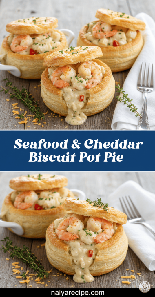 There’s something incredibly comforting about a warm, savory pot pie, especially when it’s brimming with tender seafood and crowned with a golden, cheesy biscuit topping. This Seafood & Cheddar Biscuit …