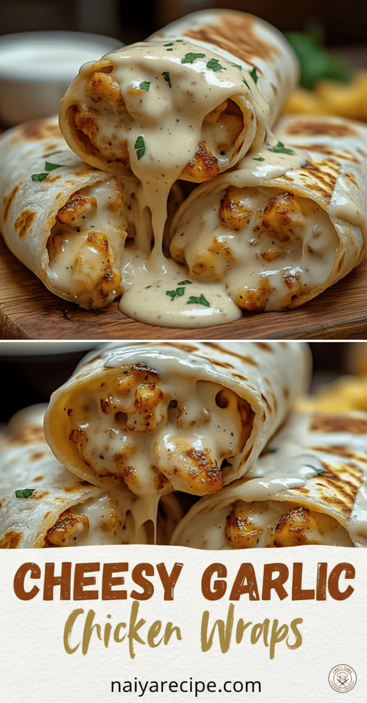 There you have it – the complete guide to making the most incredible Cheesy Garlic Chicken Wraps. This recipe is a testament to how simple ingredients, handled with care and a little bit of love, can transform into something truly extraordinary. So, next time you’re wondering what to make for dinner, reach for this recipe. You’ll be rewarded with a meal that’s bursting with flavor, incredibly satisfying, and destined to become a regular feature in your culinary repertoire. Enjoy the process, savor every bite, and share the joy of these amazing wraps with those you love. Happy cooking!