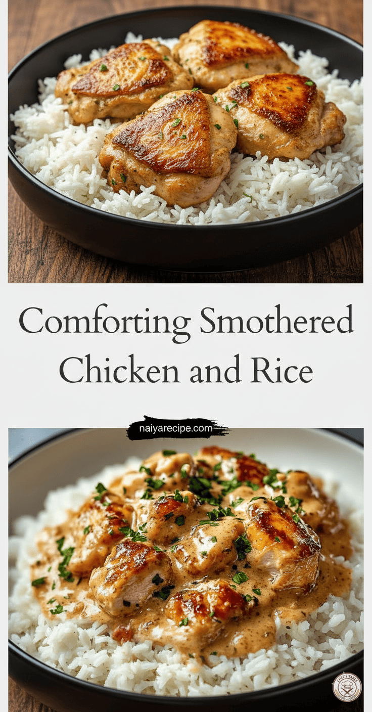 • Top with Chicken and Gravy: Carefully place one or two pieces of the tender, smothered chicken over the rice. Ladle plenty of that rich, creamy gravy over the chicken and rice.