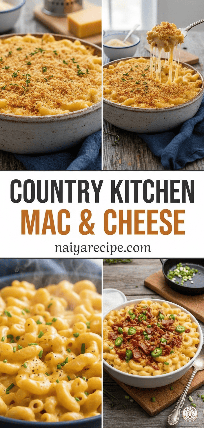This Country Kitchen Mac & Cheese recipe is more than just food; it’s an experience. It’s the kind of dish that evokes memories of home, comfort, and good times shared around the table. So gather your ingredients, follow these steps, and prepare to create a culinary masterpiece that will become a beloved staple in your recipe collection. Enjoy the process, savor the aroma, and delight in every creamy, cheesy, crispy bite!