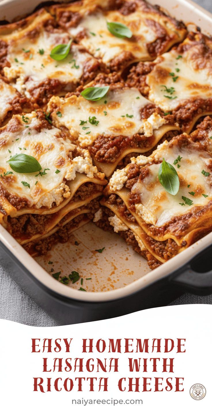 This “Easy Homemade Lasagna with Ricotta Cheese” recipe is designed to demystify the process, making this iconic dish approachable for everyone. It’s perfect for family dinners, entertaining guests, or simply indulging in a comforting meal after a long day. So go ahead, embrace the joy of cooking, and create a culinary masterpiece that will be remembered long after the last bite. Enjoy your delicious journey into the world of homemade lasagna!