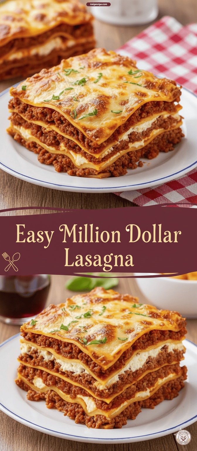 This Easy Million Dollar Lasagna isn’t just a recipe; it’s a celebration of classic Italian-American comfort food, made accessible for the home cook. It’s designed to deliver maximum flavor with manageable effort, ensuring that even on a busy weeknight, you can bring a truly spectacular meal to your table. The blend of a rich, deeply flavored meat sauce, a creamy and seasoned ricotta layer, perfectly cooked pasta, and a generous blanket of melted cheese creates a dish that is deeply satisfying and utterly delicious.