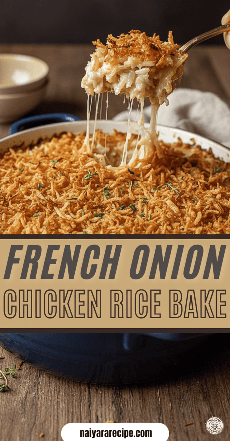 This French Onion Chicken Rice Bake is more than just a recipe; it’s an experience. It’s the kind of dish that brings people together, elicits satisfied sighs, and creates lasting memories around the dinner table. With its rich flavors, comforting texture, and ease of preparation, it’s destined to become a beloved favorite in your home. So go ahead, embrace the warmth and savory goodness of this incredible casserole – your taste buds will thank you!