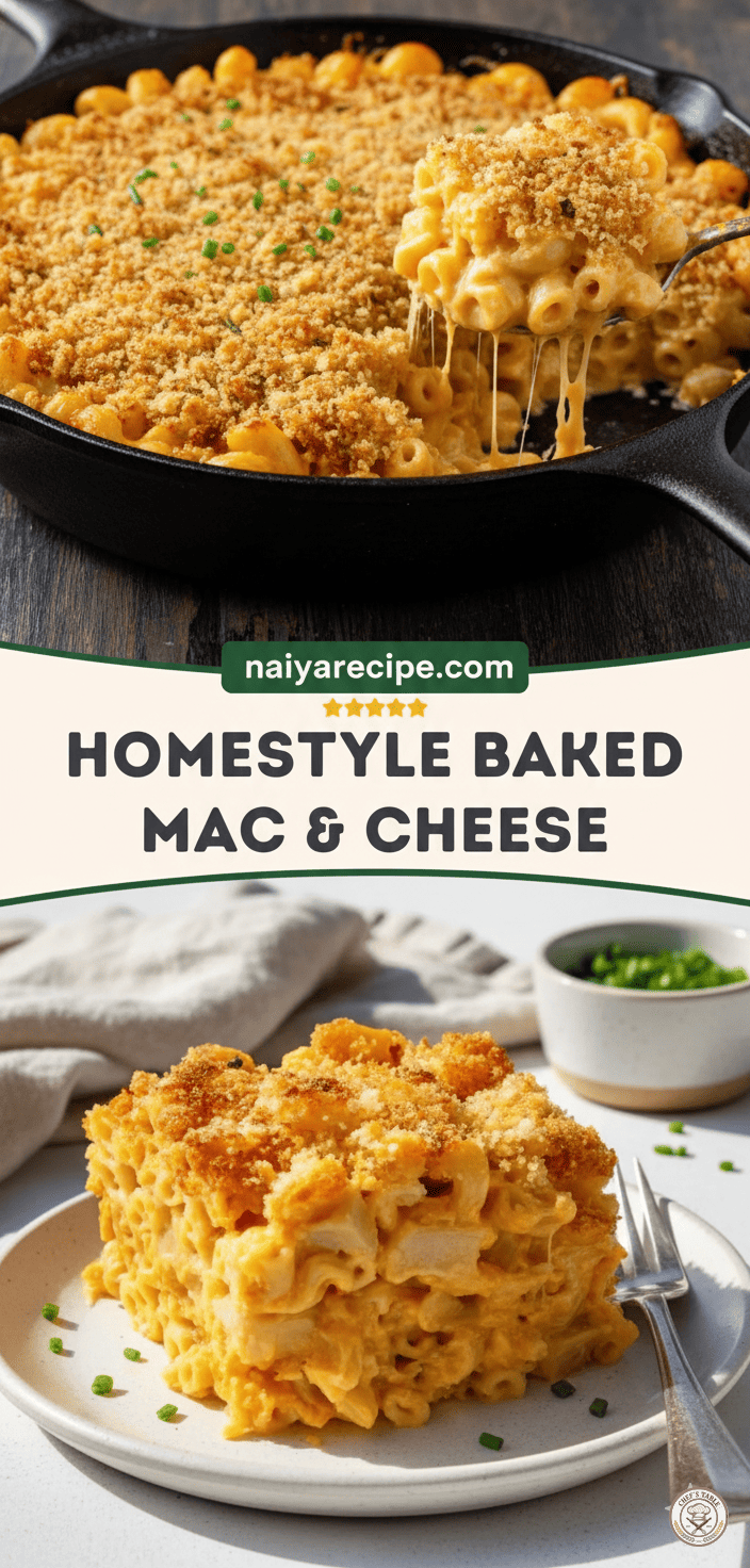 This Homestyle Baked Mac & Cheese is more than just a recipe; it’s an invitation to create something truly special in your kitchen. It’s a dish that embodies warmth, comfort, and the joy of simple, delicious food. With its creamy interior, rich cheese flavor, and irresistible crispy topping, it’s destined to become a beloved favorite in your home, bringing smiles to every table it graces. Enjoy the process, savor the aromas, and delight in every cheesy, comforting bite!