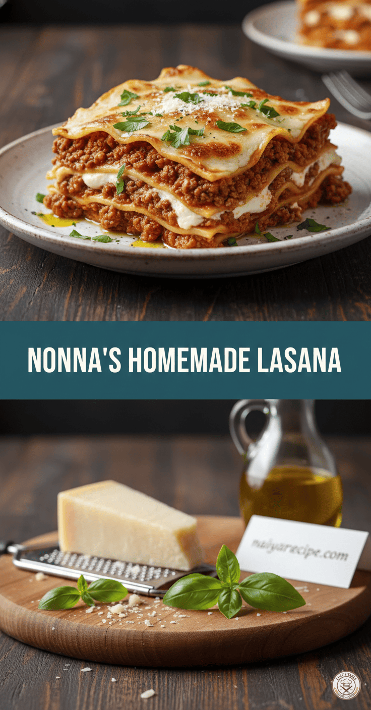 Serve your glorious Nonna’s Homemade Lasagna hot, garnished with a sprinkle of fresh parsley or basil, if desired. It pairs beautifully with a simple green salad and some crusty bread to sop up any extra sauce.