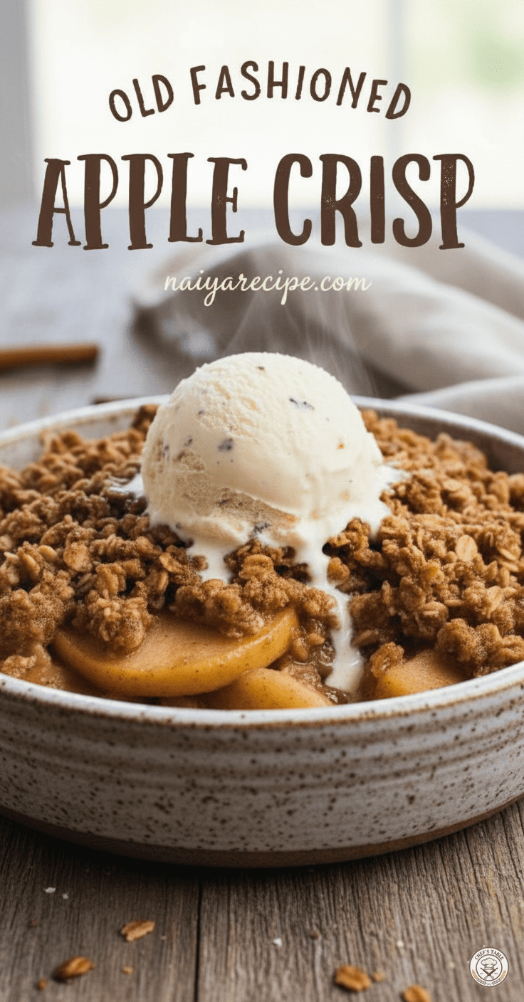 This old-fashioned apple crisp is more than just a dessert; it’s an experience. It’s the perfect treat to share with loved ones, to bring to a potluck, or to simply enjoy on a quiet evening at home. Its rustic charm and comforting flavors make it universally appealing. With this recipe from naiyarecipe.com, you can easily recreate this timeless classic in your own kitchen and savor every warm, spiced, and crunchy bite. So go ahead, gather your apples, roll up your sleeves, and prepare to fill your home with the irresistible aroma of baking perfection. You won’t regret it!