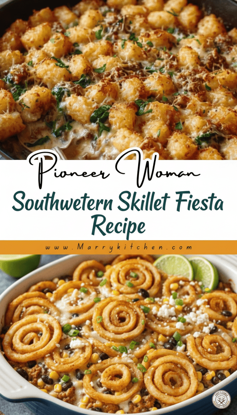 The Southwestern Skillet Fiesta is more than just a recipe; it’s an experience. It’s the kind of dish that brings people together, offering comfort, flavor, and a touch of culinary adventure. The combination of savory meat, sweet corn, hearty beans, creamy sauce, and those irresistibly crispy spiral fries creates a symphony of textures and tastes that will have everyone asking for seconds.
