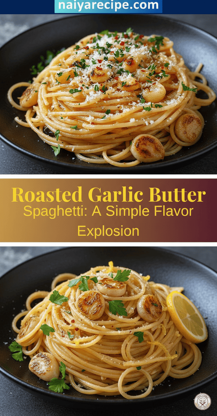 So, the next time you’re looking for a meal that delivers on both flavor and ease, reach for this recipe. You’ll be rewarded with a truly unforgettable dining experience, a simple flavor explosion that you’ll want to recreate again and again. Enjoy the process, savor the aromas, and delight in every single, delicious bite. This dish is a true reminder that culinary excellence doesn’t always require complexity; often, it just requires a deep appreciation for the ingredients themselves. The subtle sweetness of roasted garlic, the luxurious richness of butter, and the comforting embrace of spaghetti – these elements combine to create a harmony that transcends mere sustenance, offering a moment of pure culinary joy.