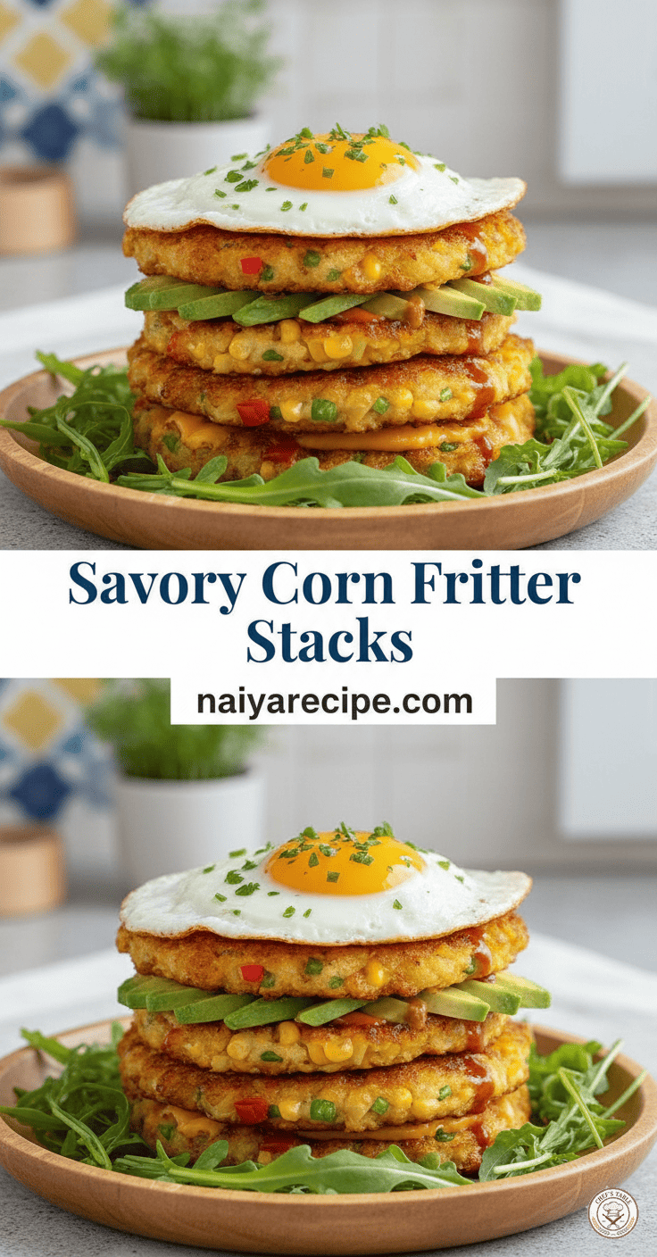 Savory Corn Fritter Stacks are more than just a meal; they’re a statement. They proclaim that breakfast can be bold, beautiful, and utterly delicious. They are perfect for a lazy Sunday brunch, a celebratory holiday meal, or simply when you want to treat yourself to something extraordinary. The combination of sweet, savory, creamy, and crispy elements creates a harmonious dish that is both comforting and exciting.