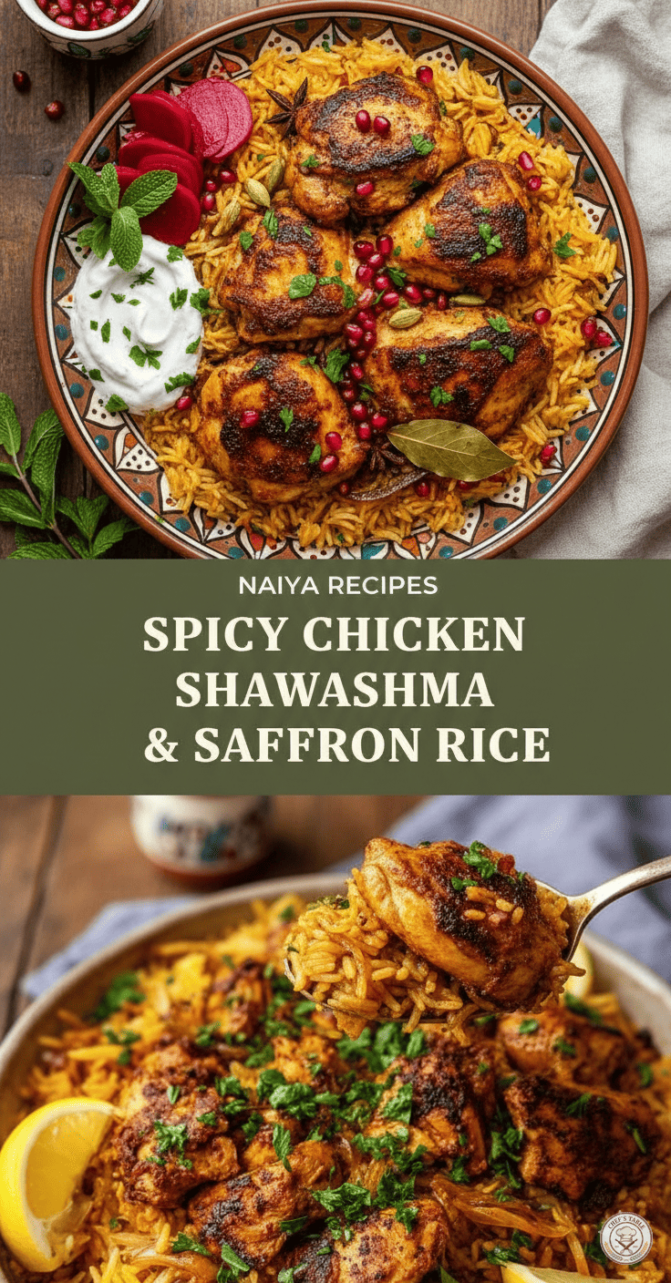 So, gather your ingredients, put on some inspiring music, and get ready to create a truly memorable meal. We can’t wait for you to experience the incredible aromas and flavors of this Spicy Chicken Shawashma & Saffron Rice. Happy cooking, and bon appétit! Visit naiyarecipe.com for more delicious inspirations.