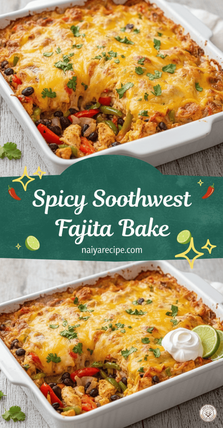 This Spicy Southwest Fajita Bake is more than just a recipe; it’s an experience. It’s a celebration of bold flavors, comforting textures, and the joy of a homemade meal shared with loved ones. It’s perfect for those evenings when you crave something exciting and satisfying but don’t want to spend hours in the kitchen. So gather your ingredients, turn on some festive music, and get ready to whip up a dish that will have everyone asking for seconds. Enjoy the taste of the Southwest, right from your own oven!
