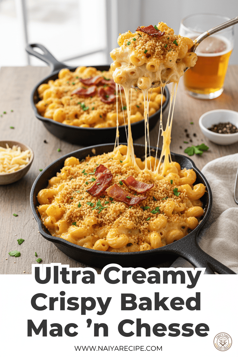 So, the next time you’re craving comfort food, skip the boxed varieties and even your old standby recipe. Embark on the journey of creating this “Ultra Creamy Crispy Baked Mac ‘n Cheese.” It’s a culinary adventure that promises to reward you with a dish so delicious, so comforting, and so utterly perfect, it will undoubtedly earn a permanent spot in your recipe rotation. Get ready to impress your taste buds and everyone lucky enough to share this incredible meal with you. Enjoy every gooey, crispy, cheesy bite!