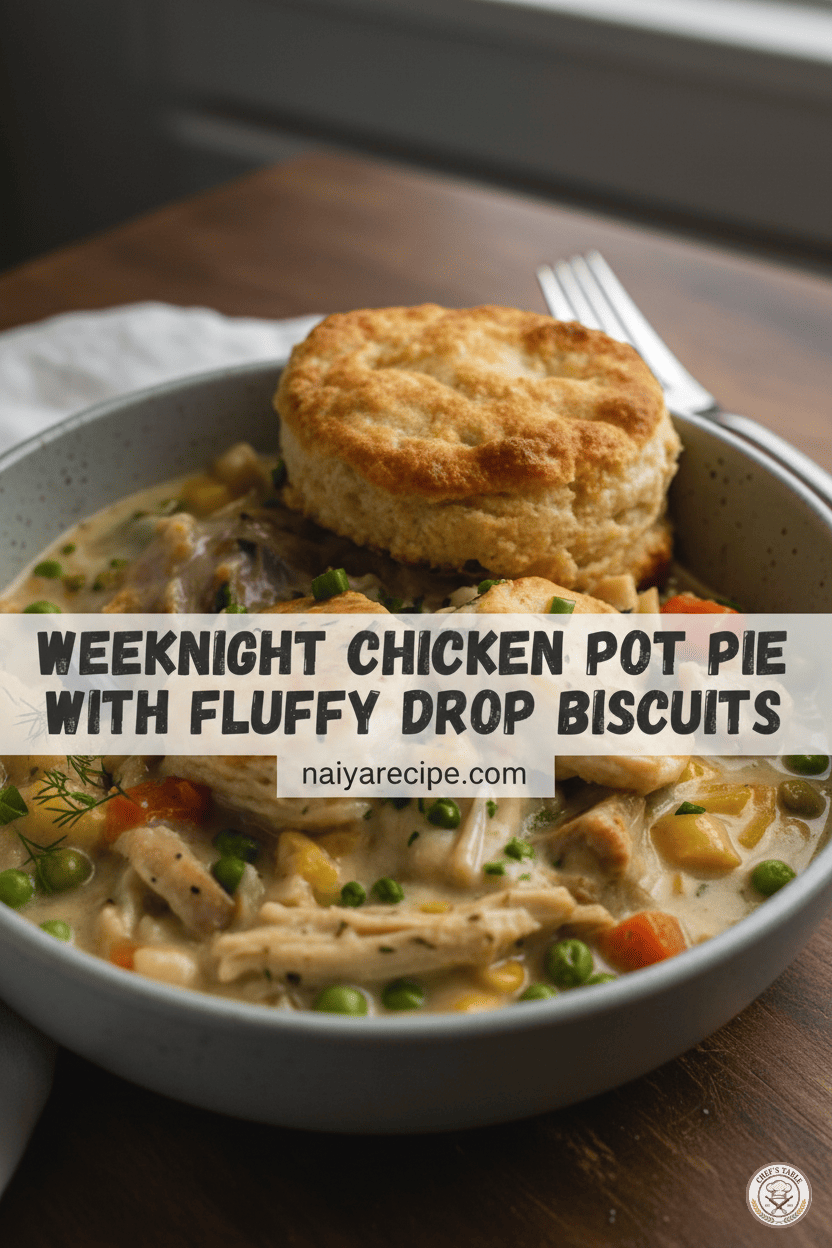 Imagine coming home after a long day, and in under an hour, being able to present a steaming, bubbling dish of pure comfort. The aroma alone will draw everyone to the kitchen. This Weeknight Chicken Pot Pie with Fluffy Drop Biscuits isn’t just a meal; it’s an experience, a warm hug in a bowl, proof that even on the busiest of evenings, you can enjoy a truly homemade and heartwarming dinner. So go ahead, give this recipe a try, and watch it become a new family favorite. It’s the ultimate comfort food, made easy.